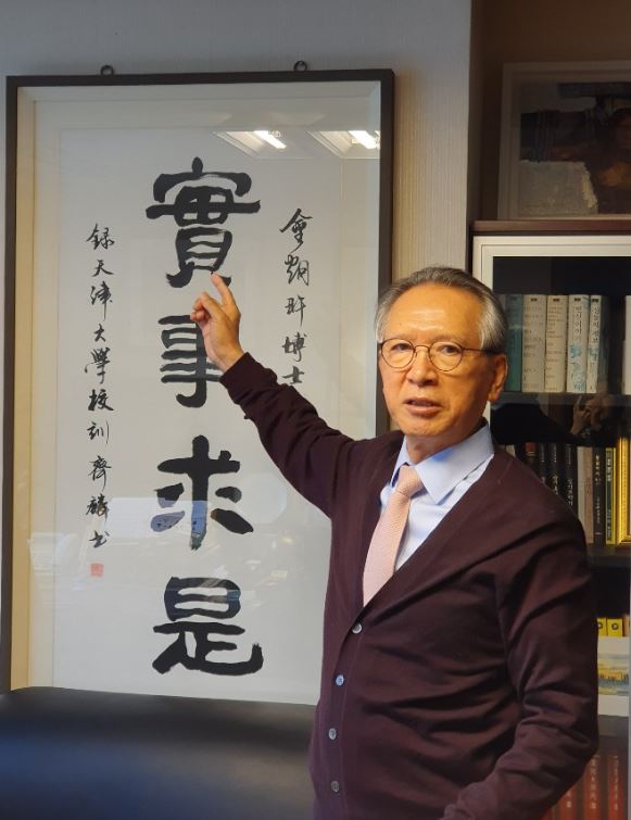 김 동문이 중국 텐진(天津)대학 명예박사 학위 수여 때 받았던 기념 액자다.